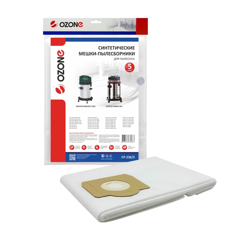 CP-236/5 Мешки-пылесборники одноразовые синтетические 5 шт для пылесоса DELVIR, SOTECO, TOR