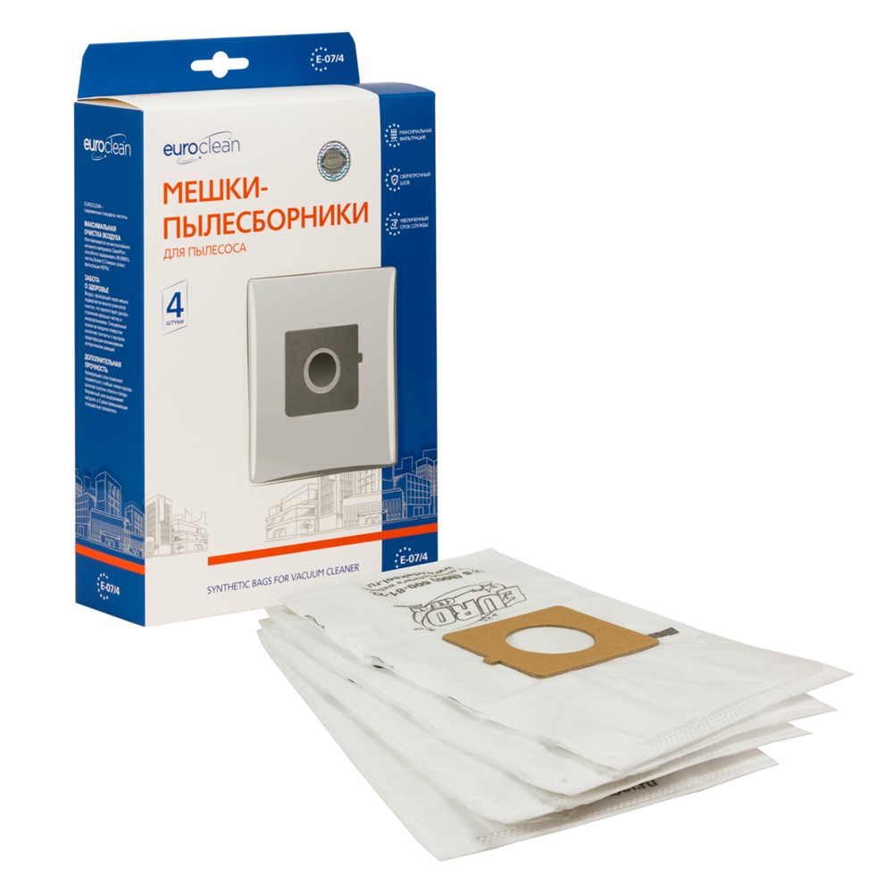 Мешки пылесборники для пылесоса LG, 4 шт., синтетические, многослойные, повышенной фильтрации, подходят: CAMERON, CLATRONIC, MOULINEX, POLAR, SCARLETT, бренд: EUROCLEAN, арт. E-07/4