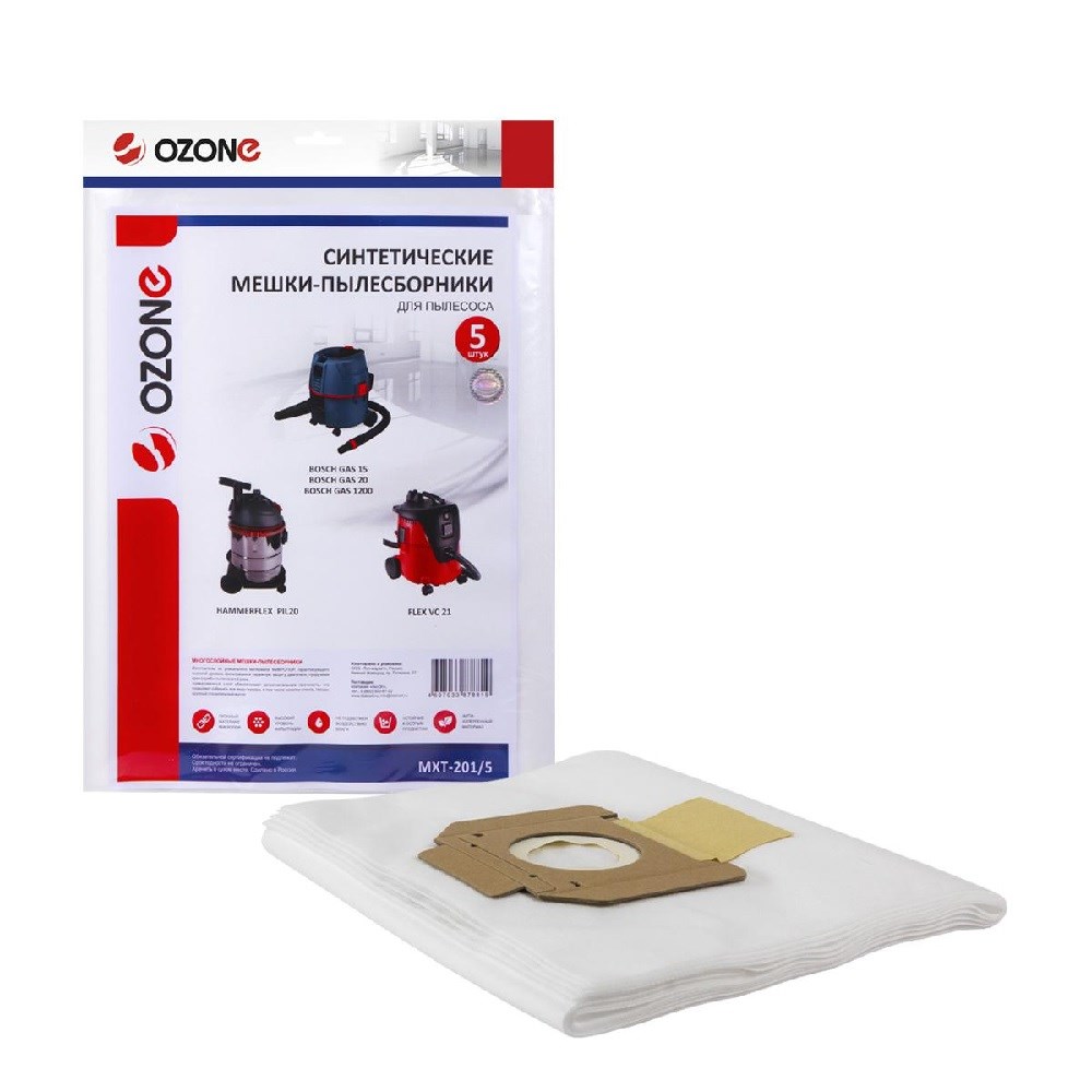 MXT-201/5 Мешок-пылесборник одноразовый синтетический для пылесосов BOSCH; TENNANT; FLEX; HAMMER; HAMMERFLEX, до 20 л (комплект 5 шт)
