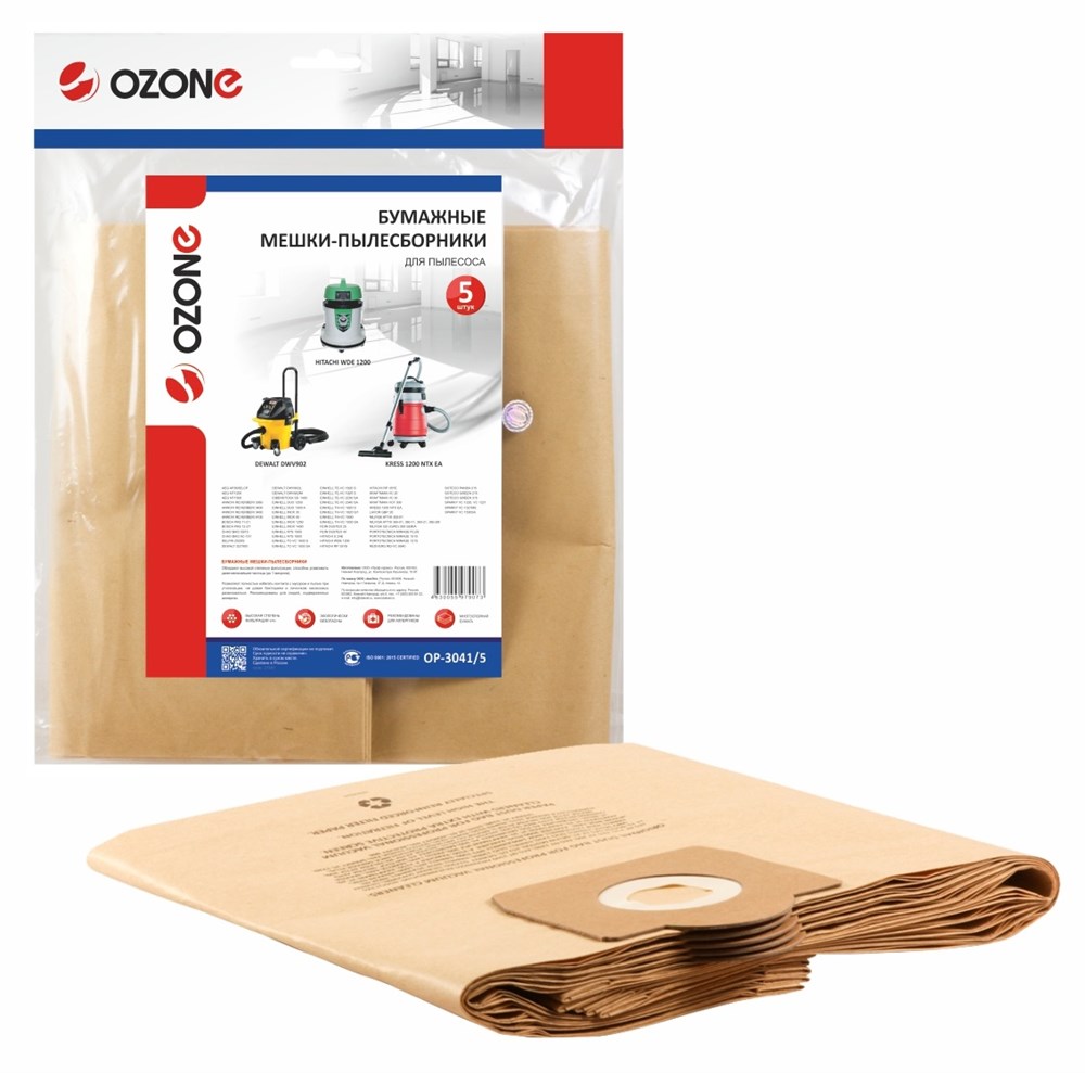 OP-3041/5 Мешок-пылесборник бумажный, 5 шт, для пылесоса AEG, BOSCH, DEWALT, EINHELL, HITACHI , NILFISK